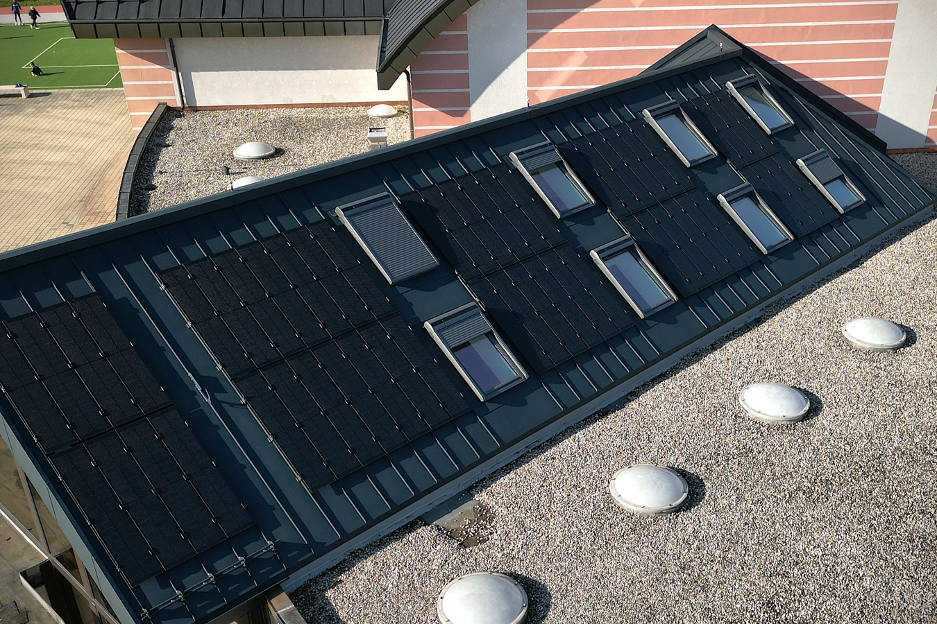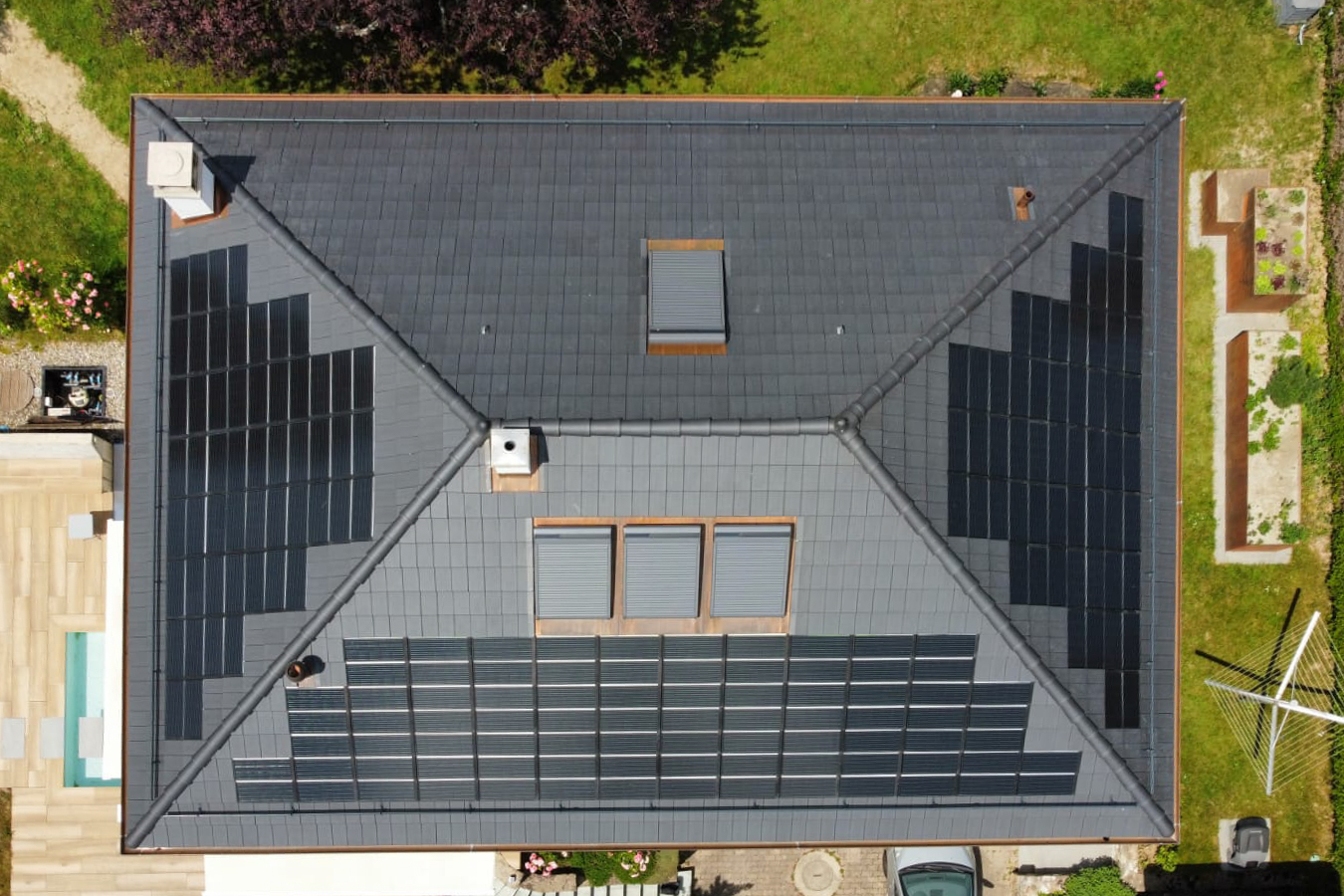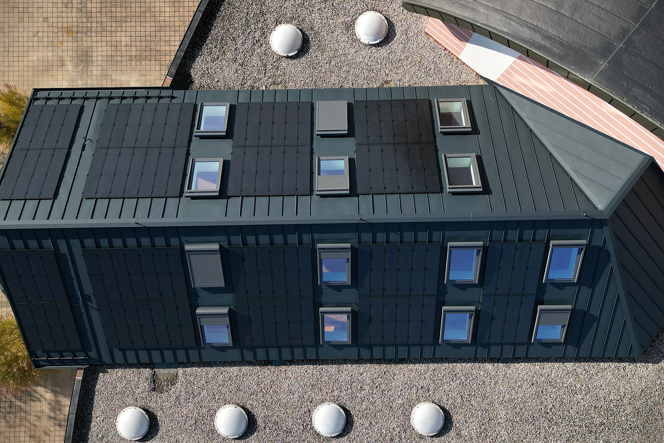 Après plusieurs semaines de travail, notre équipe a finalisé la pose du plaquage en aluminium anthracite #Prefa, avec 14 Velux intégrés et l’installation de panneaux solaires Prefa d’une puissance totale de 15 kWp, pour une intégration optimale et harmonieuse sur la toiture.