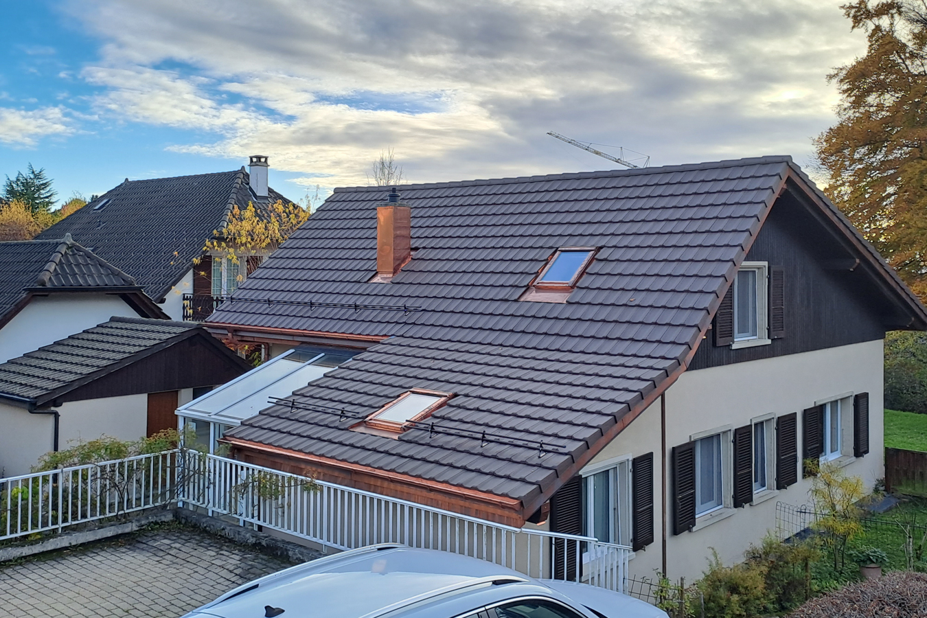 Rénovation énergétique d’une toiture au Mont-sur-Lausanne avec installation de tuiles solaires